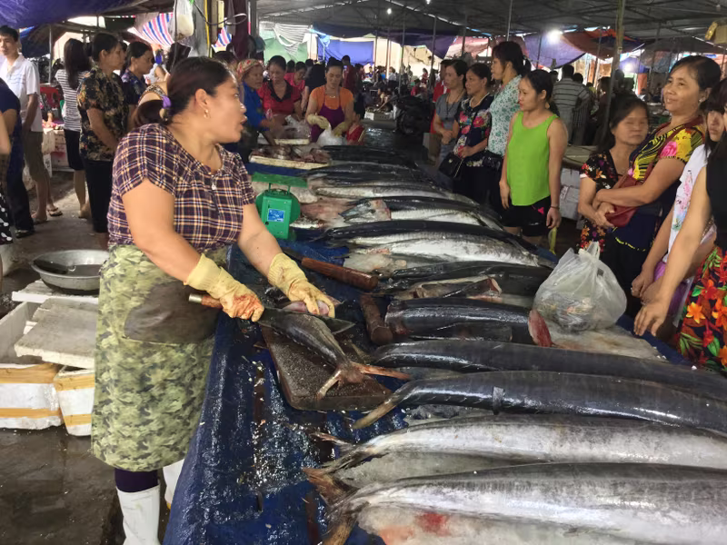 ANTD.VN -Chợ cá Nghi Thuỷ, thị xã Cửa lò, Nghệ An nằm ngay cạnh bến cá phường Nghi Thuỷ, nơi tàu thuyền bờ cập bến hàng sáng cung cấp hàng trăm tấn cá biển tươi ngon sau những chuyến đánh bắt xa bờ dài ngày. Chính vì thế chợ cá Nghi Thuỷ có nguồn hải sản phong phú, trở thành đầu mối cung cấp thực phẩm biển tươi sống cho cả vùng. Đi chợ cá Nghi Thuỷ ngẫu nhiên trở thành tour không thể thiếu đối với khách du lịch thập phương đến với vùng biển Cửa Lò. Điều hấp dẫn không chỉ bởi thực phẩm ở đây luôn tươi mà còn bởi văn hoá chợ từ lâu đời đã ngấm và lôi cuốn du khách.