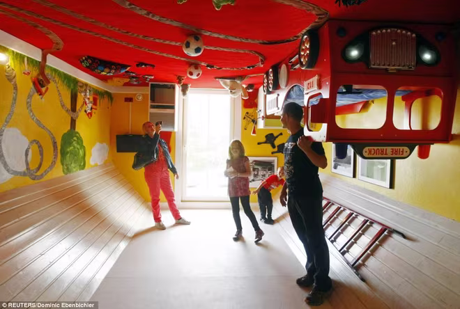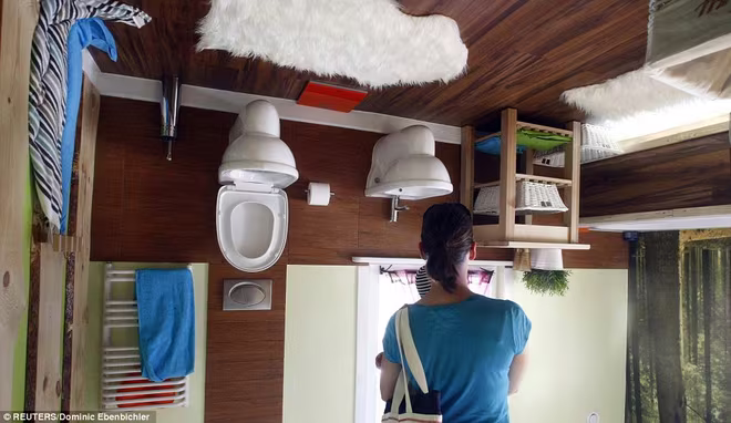 Trên thực tế đây là một tác phẩm của hai kiến trúc sư nổi tiếng người Áo là Irek Glowacki và Marek Rozhanski. Cũng giống như hình dáng bên ngoài, tất cả các vật dụng, nội thất trong căn nhà cũng bị lật ngược hoàn toàn. Căn nhà mang lại cảm giác mới lạ và thú vị cho người xem, trở thành một địa điểm du lịch nổi tiếng của Áo.