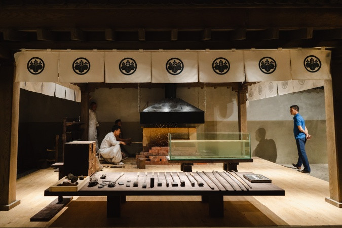 Quầy mài kiếm, nơi kiếm được nghệ nhân mài sắc qua 12 loại đá mài. Công đoạn này được gọi là "togi", đòi hỏi độ chính xác và kỹ năng đặc biệt của nghệ nhân làm kiếm.