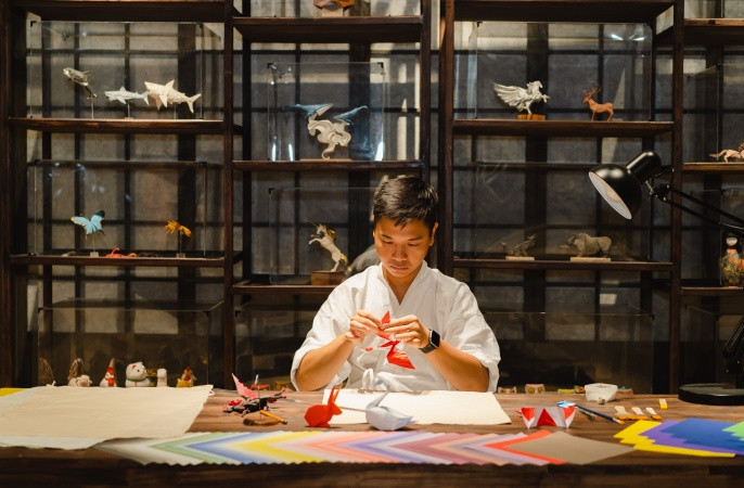 Bên cạnh kiếm Nhật, du khách còn được trải nghiệm nghệ thuật gấp giấy Origami và tận mắt chiêm ngưỡng bộ sưu tập búp bê truyền thống Nhật Bản daruma tuyệt mỹ.