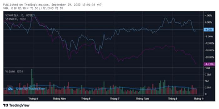 Thị trường chứng khoán vừa nối dài chuỗi ngày ảm đạm khi VN-Index giảm 17,55 điểm với giá trị khớp lệnh trên HoSE chỉ đạt 9.160 tỷ đồng. Trong bối cảnh VN-Index về mức điểm thấp nhất trong gần 2 năm (20 tháng), cổ phiếu VNM của CTCP Sữa Việt Nam (Vinamilk) trở thành điểm sáng hiếm hoi khi ngược dòng tăng ấn tượng với giao dịch khá sôi động.