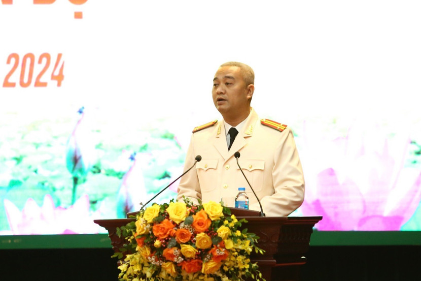 Trung tướng Nguyễn Hải Trung - Ủy viên Ban Thường vụ Thành ủy, Bí thư Đảng ủy, Giám đốc CATP chủ trì lễ công bố được tổ chức trực tuyến từ hội trường lớn CATP đến Công an các đơn vị, địa phương trên địa bàn thành phố.