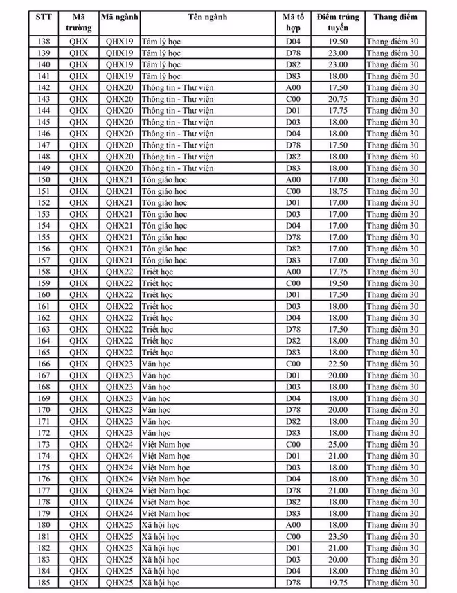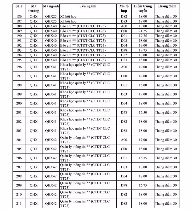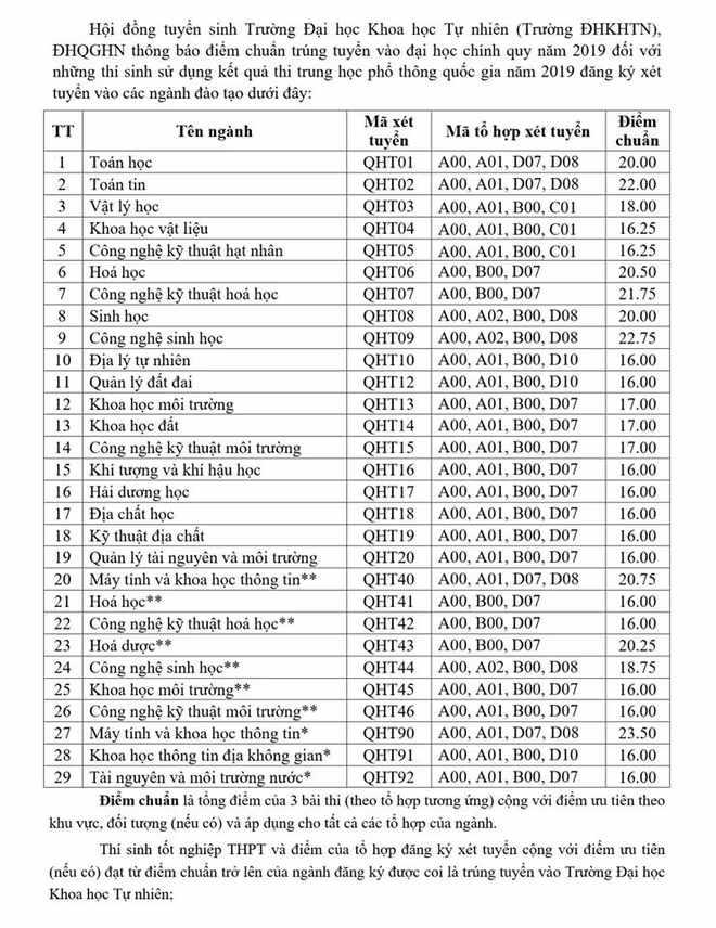 Tối 8-8, ĐHQG Hà Nội đã chính thức công bố điểm chuẩn vào các trường thành viên và khoa trực thuộc.