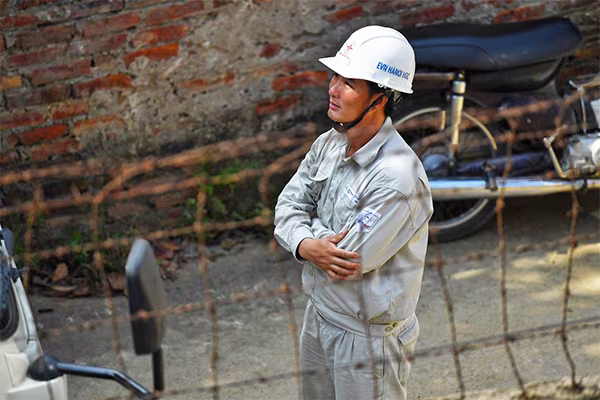 Gần một tháng nay, Tới và 12 anh em trong đội sửa chữa điện hotline Hà Nội gần như không có ngày nghỉ. Hà Nội ghi nhận chuỗi ngày nắng nóng kéo dài với nhiệt độ và mức tiêu thụ điện lập đỉnh trong lịch sử. Mỗi ngày, đội huy động toàn lực lượng, chia ca, thực hiện từ một đến hai công trình đấu mới đường dây. 2 phần 3 thời gian trong ngày là phơi mình giữa nắng gắt. Cả đội luôn trong tư thế túc trực đường dây nóng, sẵn sàng tỏa ra mọi ngóc ngách Thủ đô khi nhận tin báo sự cố sửa chữa hay yêu cầu thao tác từ Trung tâm điều khiển của EVN Hà Nội.