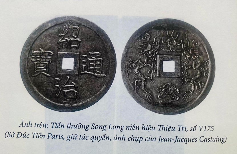 “Năm 1990, người ta lại thấy xuất hiện một bộ gồm hàng chục đồng tiền thưởng bằng vàng được bán ra với tên gọi “Sưu tập đồng tiền thưởng bằng vàng của Hoàng đế xứ An Nam”. Mặc dầu văn phòng rao bán không xác định được nguồn gốc xuất xứ từ hoàng triều, nhưng số lượng và chất lượng các món đồ buộc người xem nghĩ rằng, toàn bộ các món rao bán vốn thuộc về một nhân vật thân cận với Hoàng đế An Nam”.