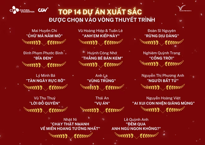 Hội đồng thẩm định của cuộc thi năm nay tiếp tục là những đạo diễn, nhà sản xuất quen thuộc của điện ảnh Việt như: đạo diễn Phan Đăng Di, nhà sản xuất Trần Thị Bích Ngọc, \đạo diễn Trịnh Đình Lê Minh...Vòng tuyển sinh vừa qua, chứng kiến nhiều hồ sơ chất lượng được gửi về, do vậy hội đồng thẩm định đã quyết định chọn ra top 14 thay vì top 10 dự án vào vòng thuyết trình.