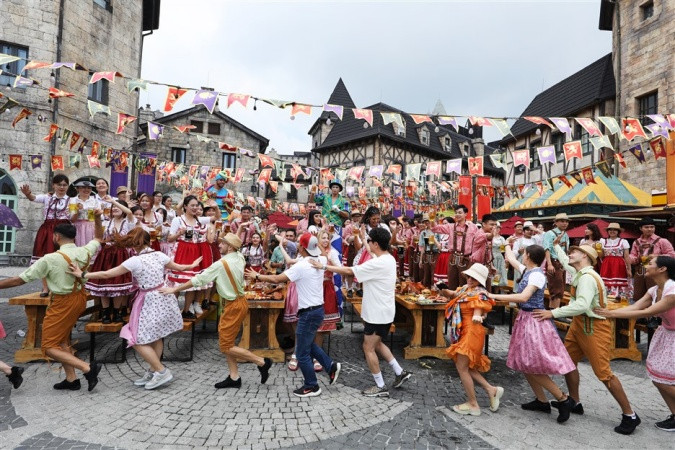 Không ít du khách đã thuê trang phục lễ hội để “biến hình” thành những chàng trai cô gái xứ Bavaria đúng điệu để ghi lại khoảnh khắc đáng nhớ với Lễ hội Bia B’estival được yêu thích nhất tại Sun World Ba Na Hills.