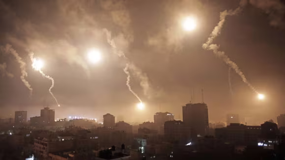 Đạn pháo của Israel sáng trong trời đêm ở Dải Gaza