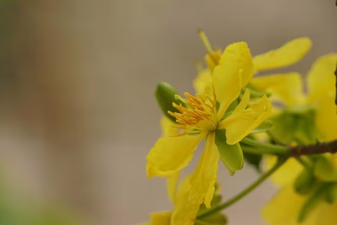 Vẻ đẹp của mai vàng đã được Phật Hoàng Trần Nhân Tông trân trọng ngợi ca trong bài thơ Tảo mai kỳ 1: “Năm cánh hoa tròn nhuỵ điểm vàng/ San hô vảy bạc vẻ tân trang/Cuối đông san sán cành khoe trắng/Một thoáng Xuân về đã rụng quang/ Móc ngọt chảy thơm tan giấc bướm/Trăng đêm loáng nước khát chim rừng/ Hằng Nga như biết hoa mai đẹp/Đâu tiếc cung Thiềm lạnh quế hương”.