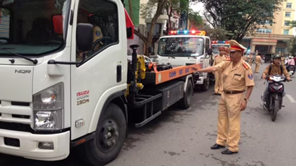 CSGT Hà Nội bố trí 16 xe cẩu để ứng cứu tại các điểm ngập sâu