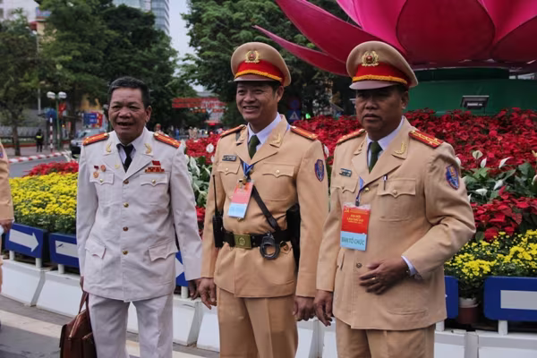 Đại tá Đào Vịnh Thắng cùng chỉ huy Phòng CSGT xuống đường chỉ đạo CBCS phân luồng, đón dẫn các đoàn đại biểu dự Đại hội
