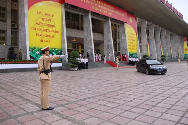 Sáng nay 1-11, Đại tá Đào Vịnh Thắng, Trưởng Phòng CSGT đường bộ - đường sắt CATP Hà Nội cho biết: Thực hiện sự chỉ đạo của Bộ Công an, Thành ủy, UBND và Giám đốc CATP nhằm đảm bảo trật tự ATGT, phục vụ Đại hội Đại biểu lần thứ XVI của TP Hà Nội, trong hai ngày 31-10 và 1-11, Phòng CSGT đã bố trí đủ lực lượng, phương tiện làm nhiệm vụ đón, dẫn các đoàn đại biểu từ 5 cụm khách sạn đến Cung văn hoá Hữu Nghị dự họp, đồng thời đảm bảo công tác đón, dẫn các đoàn tham gia các hoạt động tập trung bên lề Đại hội.