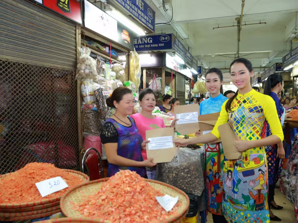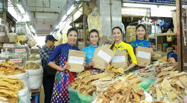 Sau khi tham gia nhảy flashmob, các người đẹp đã di chuyển đến khu vực chợ Đồng Xuân để phát túi giấy tự huỷ cho các tiểu thương và khách hàng tại đây, nhằm kêu gọi mọi người nâng cao ý thức trong việc giảm thiểu túi nhựa khó phân huỷ gây ô nhiễm môi trường.