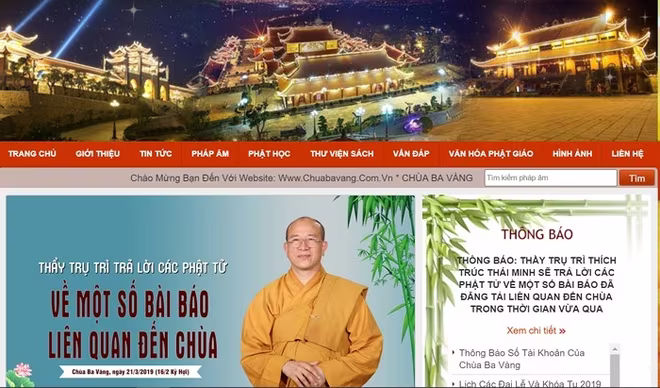 Hình ảnh website chùa Ba Vàng- hiện đã bị đóng