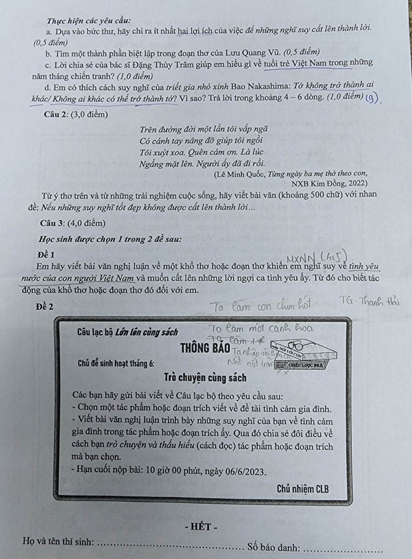 Đề 2: Yêu cầu đề không mới, nếu không muốn nói là rất quen thuộc với thí sinh. Tuy vậy, cách đặt vấn đề của đề thi có khả năng gây nhiễu thông tin cho thí sinh. Với yêu cầu viết bài văn nghị luận trình bày những suy nghĩ của bạn về tình cảm gia đình trong tác phẩm hoặc đoạn trích, thí sinh có thể lựa chọn văn bản trong SGK hoặc ngữ liệu ngoài đều được; nhưng chia sẻ về “cách đọc” sẽ gây khó cho một số thí sinh khi viết vì khó để hệ thống, sắp xếp những suy nghĩ cá nhân trong thời gian ngắn. Những thí sinh thích lối tư duy mở sẽ cảm thấy hứng thú với cách đặt vấn đề này.