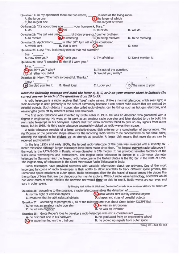 Đề và gợi ý đáp án đề thi môn Tiếng Anh, kỳ thi tuyển sinh Đại học đợt 1