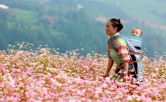 “Giấc mơ trên lưng” gợi nhắc đến hình ảnh những bà mẹ địu con trên lưng với mong ước sau này con của mình lớn lên trở thành những người tốt, được học cái chữ và cuộc sống sẽ tốt đẹp hơn.