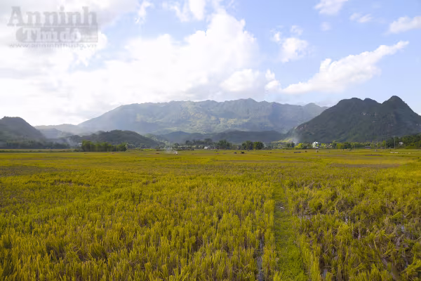 Những ngày này đến với thung lũng Mai Châu, chúng ta sẽ cảm nhận thấy mùi thơm của lúa, với khoảng rộng ngập tràn sắc vàng, xa xa là những nếp nhà sàn yên bình...vẻ đẹp thanh bình mà hoang sơ của vùng núi miền Tây Bắc vào mùa lúa chín khiến bất kỳ ai đặt chân đến cũng đầy ngỡ ngàng, xao xuyến.