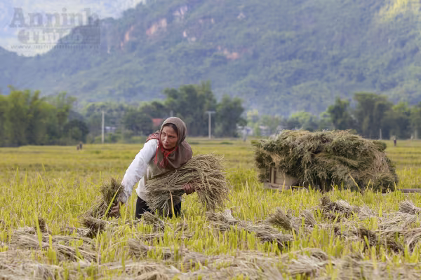 Đi sâu vào các bản chúng ta dễ dàng trông thấy hình ảnh những người nông dân đang gùi lúa đi giữa cánh đồng.
