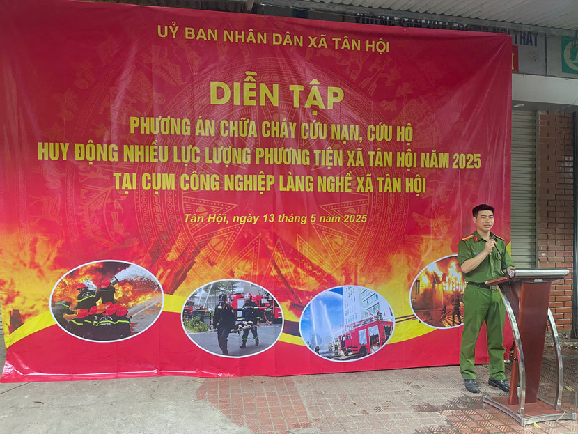 Với tính chất đặc thù địa bàn có làng nghề xen kẽ khu dân cư, sau khi tuyên truyền, hướng dẫn cho các hộ dân trên địa bàn xã tuân thủ các quy định về PCCC và CNCH, tổ địa bàn Đan Phượng của Phòng Cảnh sát PCCC và CNCH đã phối hợp cùng UBND xã Tân Hội tổ chức thực tập phương án phương án PCCC và CNCH tại khu dân cư, Làng nghề nguy hiểm cháy nổ cao trên địa bàn xã Tân Hội năm 2025.