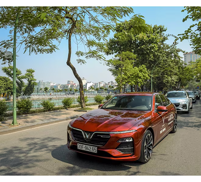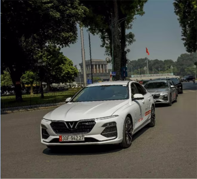 tại khu vực trung tâm Hà Nội vô cùng phấn khích khi lần đầu tiên chứng kiến 16 chiếc "xế" sang VinFast Lux dạo phố giữa tiết trời thu đặc trưng của Thủ đô.