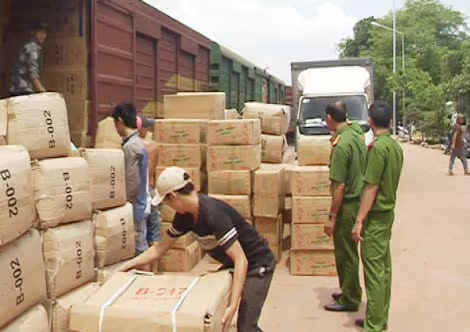 Hàng hóa gồm đủ loại như phụ tùng ôtô, xe máy, sữa tắm, linh kiện máy may, quần áo, vải vóc… do Trung Quốc và Thái Lan sản xuất. Số hàng hóa được đóng trong các bao tải, thùng giấy, kiện gỗ, giấu lẫn trong đó là 6 chiếc xe máy Honda SH, Honda PS không biển số, không giấy tờ.