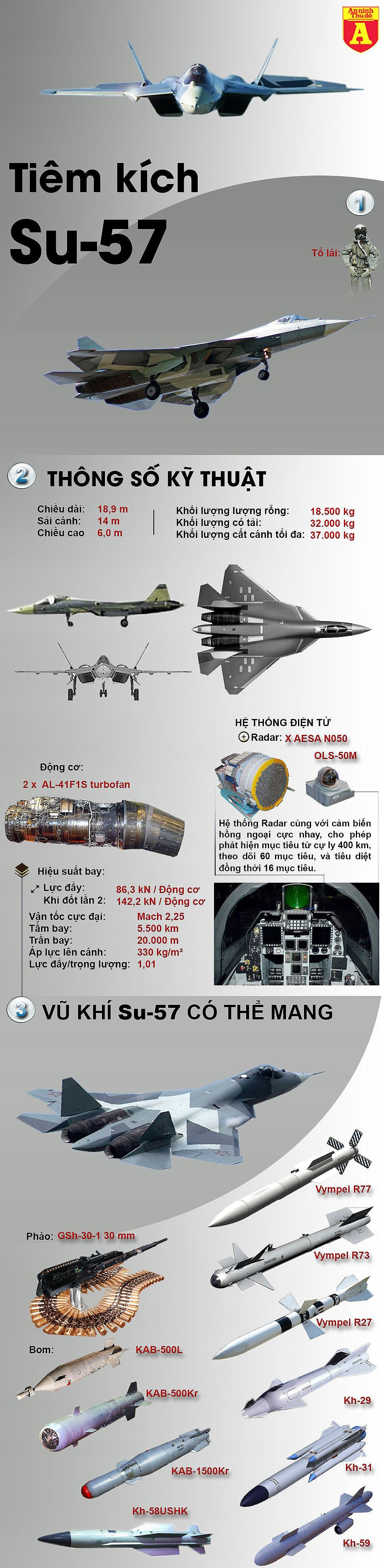 Theo Business Insider, động cơ Izdeliye-30 cung cấp lực đẩy tăng 30% so với động cơ 117, cho phép máy bay hoạt động ở độ cao tới hơn 21 km so với mực nước biển. Su-57 được xem là nỗ lực lớn của Nga trong việc phá thế độc tôn của Mỹ về chiến đấu cơ tàng hình. Hiện tại, Mỹ vẫn là quốc gia duy nhất có tiêm kích tàng hình ở trạng thái sẵn sàng chiến đấu. Su-57 có 2 khoang vũ khí lớn dưới bụng với kích thước 4,6x1 m mỗi khoang, cùng 2 khoang vũ khí nhỏ bên hông.
