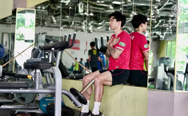 Văn Hậu tích cực tập luyện trong phòng gym |