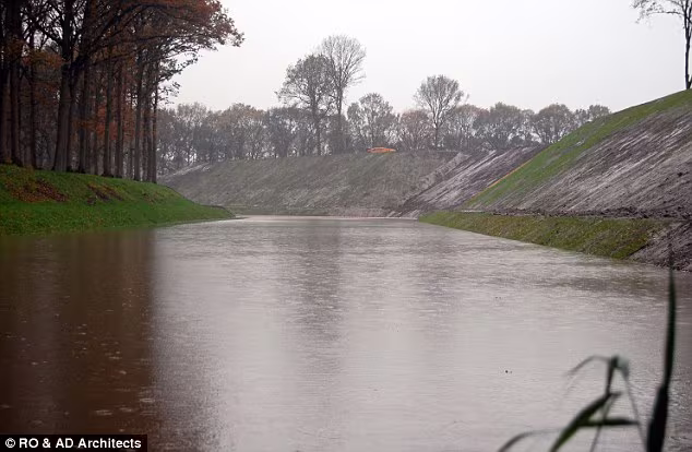 Lấy ý tưởng từ những con hào được xây dựng quanh pháo đài vào khoảng thế kỷ 17, các kỹ sư người Hà Lan hiện đại đã nghĩ ra cách thiết kế một con đường nằm lọt thỏm ngay giữa lòng sông. Nếu nhìn bên trên, hẳn đó là một con đường vô hình được ngụy trang. Từ con đường này, những người đi qua nó hầu như sẽ không bị phát hiện dưới mực nước.