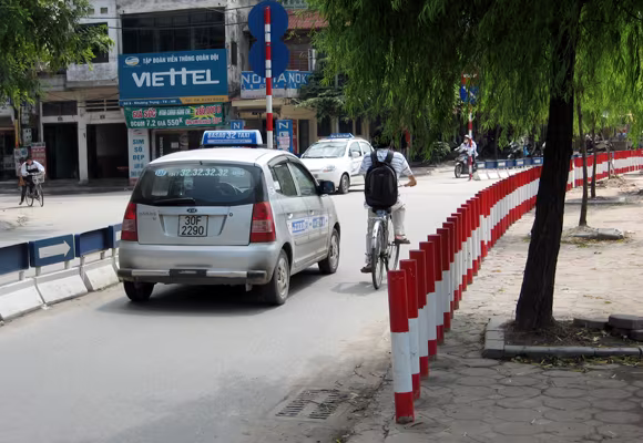 Có lẽ đây là tuyến đường đầu tiên của Hà Nội có hàng cọc trên vỉa hè. Người dân chúng tôi không hiểu tại sao lại có hàng cọc dở dang trên vỉa hè ở đoạn đường này và hàng cọc đó để làm gì?.