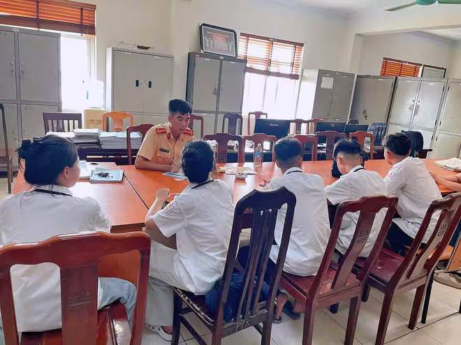 Nhóm học sinh vi phạm được mời đến cơ quan Công an làm việc.
