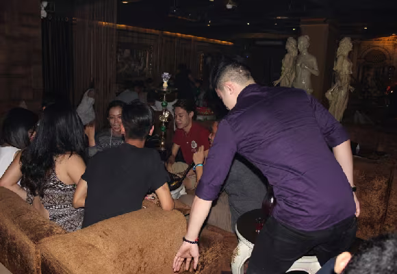 Khi đoàn kiểm tra ập vào, bên trong quán có khoảng hơn 100 khách đang vui chơi tại đây. Phần lớn số khách này đều là giới trẻ đang vui chơi, hút shisha trong âm nhạc vũ trường sôi động.