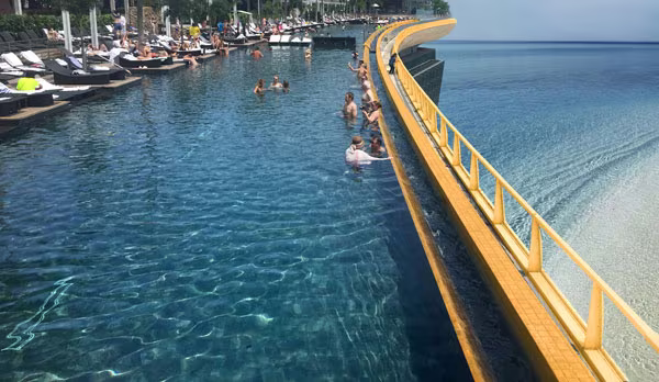 Bể bơi vô cực cao nhất và lớn nhất thế giới đặt trên nóc toà nhà và được thiết kế để nước chảy tràn qua thành bể, làm cho mặt bể lúc nào cũng phẳng như gương và tạo cảm giác bể kéo dài đến… vô cực giống như toà nhà Marina Bay Sands ở Singapore.