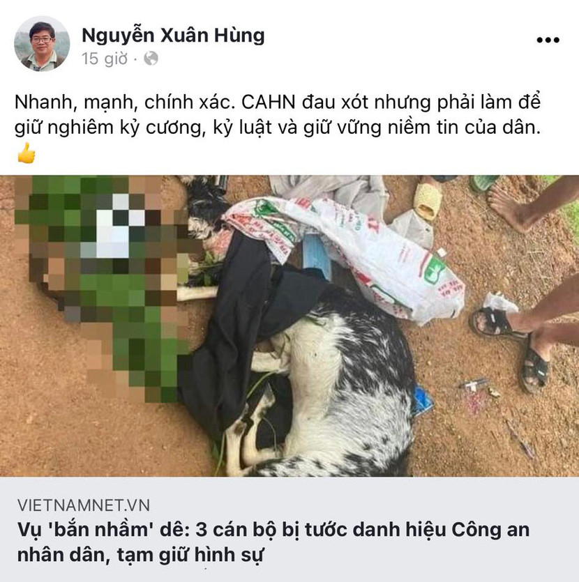 Nhà báo Võ Đức Phúc cũng viết trên facebook của mình: Như vậy đã sòng phẳng, thượng tôn pháp luật, bất kể là cán bộ công an hay dân thường. Chỉ vì 2 con dê, mấy cán bộ trẻ đã mất trắng cả sự nghiệp, một bài học thật cay đắng và rất đau.
