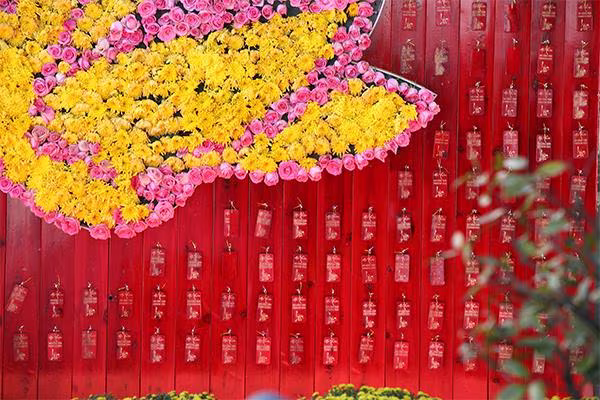 Xuống ga đến, sương mây quấn lấy người, vấn vương trên vai, trên tóc mời gọi. Bước từng bước chậm rãi qua các bậc đá dẫn tới Cổng tam quan Thanh Vân Đắc Lộ rồi tới Bích Vân Thiền Tự, sẽ thấy hai bức tường được kết từ hàng ngàn thẻ chữ Lộc và chữ An, trang trí hình hoa sen được tạo bởi hàng trăm bông cúc vàng và hoa hồng, một năm mới rực rỡ với nhiều an lạc như đang mở ra với du khách, Phật tử, từ đỉnh thiêng Fansipan.