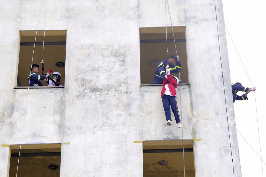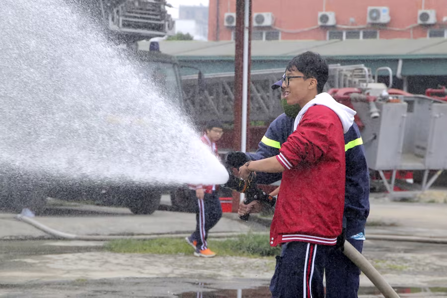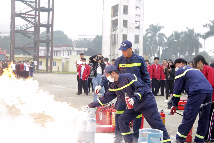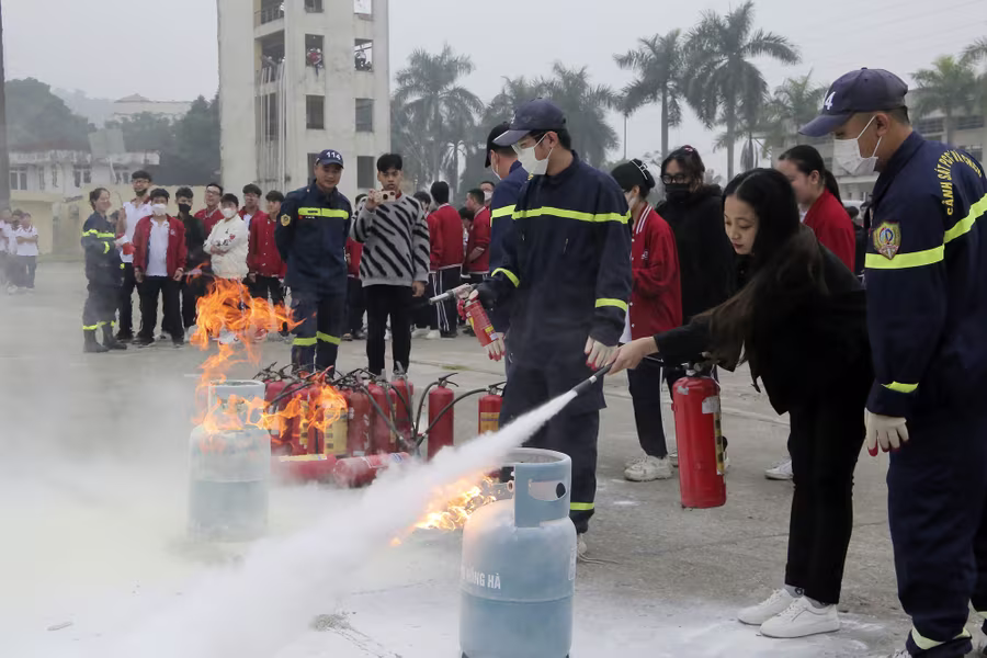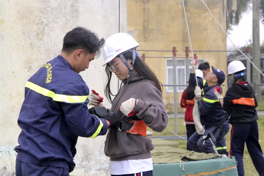 ANTD.VN - Ngày 22-11, gần 400 học sinh trường THPT Hồ Tùng Mậu (Thanh Xuân, Hà Nội) đã được học và trải nghiệm các kỹ năng chữa cháy, du dây thoát hiểm khỏi nhà cao tầng khi có sự cố. Đây là hoạt động nằm trong chương trình học tập trải nghiệm với chủ đề “Ứng dụng khoa học tự nhiên trong phòng cháy chữa cháy” do nhà trường phối hợp cùng Đại học Phòng cháy chữa cháy tổ chức.
