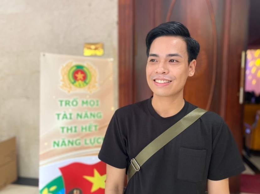 Em rất vui khi được đến sự kiện để hỗ trợ cho chị Ma Tùng Lâm (Cảnh sát khu vực, Công an quận Hai Bà Trung, một trong 10 thí sinh tham dự Hội thi Nữ Cảnh sát khu vực tài năng Công an Thủ đô lần thứ nhất năm 2023) trong phần thi năng khiếu.
