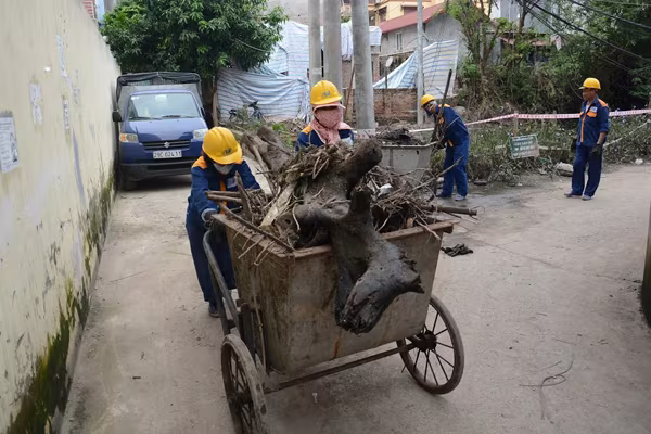 Cụ thể, công ty đã điều động công nhân tổ chức đóng cọc, căng dây, cảnh báo khu vực nguy hiểm, khơi thông dòng chảy. Bố trí máy bơm di động công suất 290m3/h và xe bơm di động công suất 1.800m3/h tổ chức bơm cưỡng bức, dàn thiết bị cơ giới hút, thổi tăng khả năng thoát nước cho khu vực ngõ 124 và ngách 124/45 Âu Cơ. Đồng thời phối hợp với địa phương, đơn vị thi công tuyến đường ngõ 124 Âu Cơ khai thông các vị trí dự án chưa hoàn thiện để tăng khả năng thoát nước.