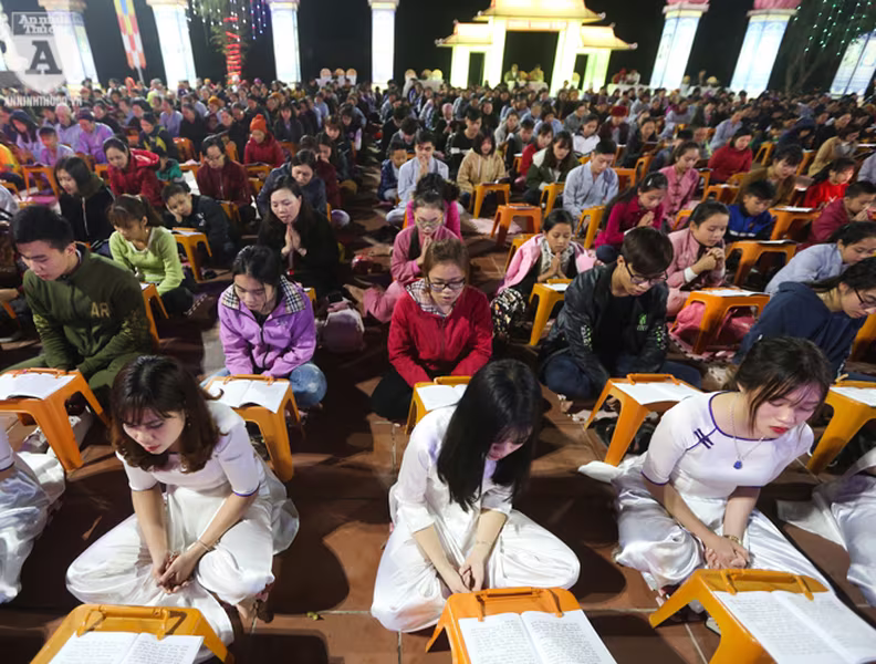 ANTD.VN -Trái ngược với những hình ảnh hàng nghìn người chen lấn trên tay là những đồ lễ đầy vàng mã trong những ngày gần đây khi người dân đi lễ chùa như báo chí phản ánh. Hàng trăm bạn trẻ đã đến chùa Ninh Tảo (Hà Nam) ngồi tụng kinh, niệm phật với một không gian thanh tịnh cùng nhau ước nguyện một năm mới tốt lành.