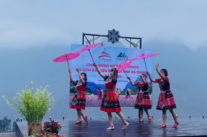 Theo đó, Hiệp hội Du lịch tỉnh Hà Giang phối với Sở VHTTDL tỉnh Hà Giang tổ chức đón đoàn du khách đầu tiên là các nghệ sĩ đến từ Hà Nội “xông đất” năm 2024.