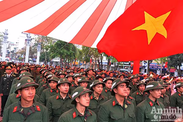 Thanh niên Hà Nội tự hào dưới lá quốc kỳ trước giờ lên đường nhập ngũ