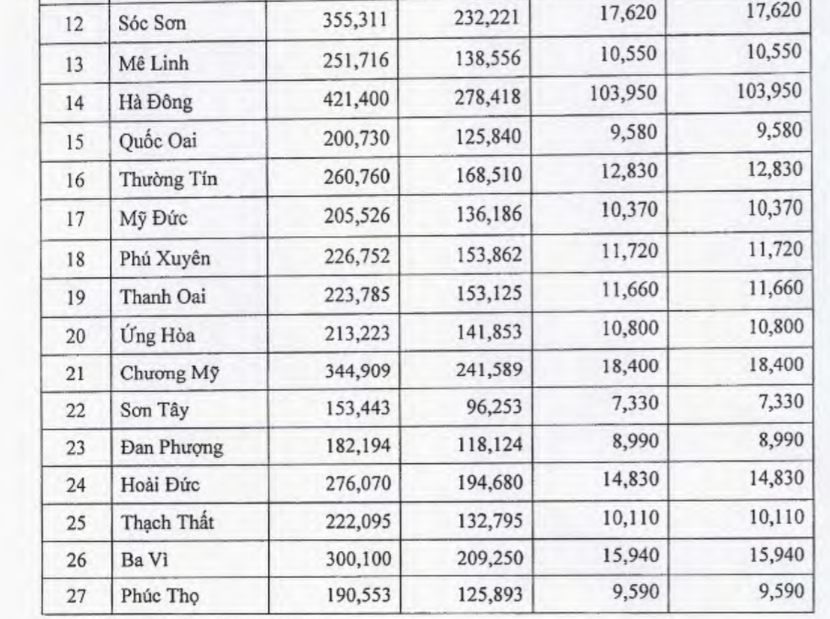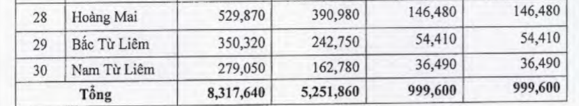 Danh sách cụ thể phân bổ vaccine Vero Cell cho các quận, huyện, thị xã: