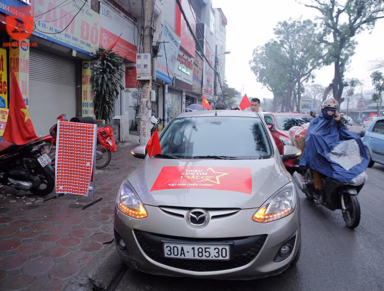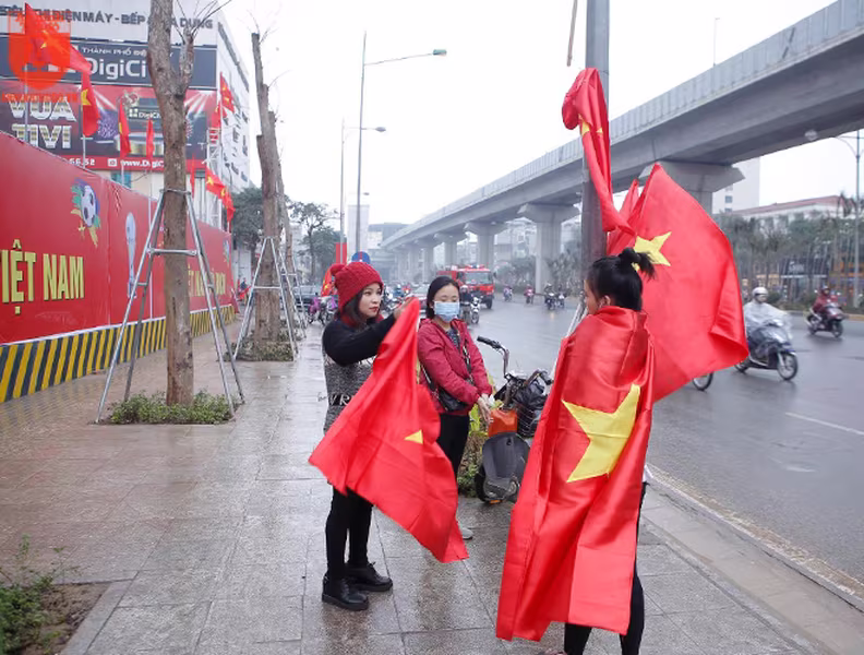 ANTD.VN -Sáng 27-1, bất chấp mưa lạnh tại Hà Nội, hàng nghìn người hâm mộ vẫn xuống đường mua áo, cờ Tổ quốc, ruy băng để cổ vũ cho trận chung kết giữa U23 Việt Nam và U23 Uzbekistan tại giải vô địch U23 châu Á dự kiến sẽ diễn ra vào lúc 15h chiều nay.