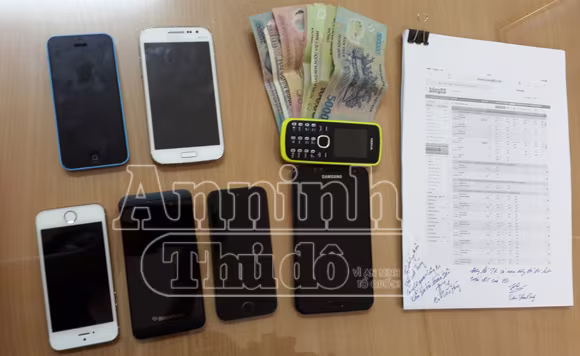Tang vật thu giữ gồm nhiều điện thoại smartphone