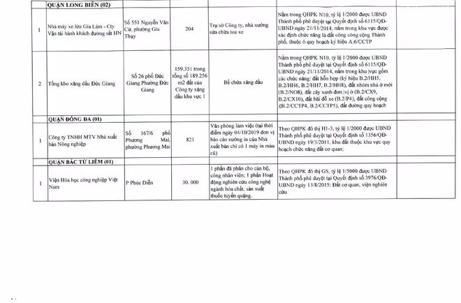 Chi tiết danh mục 10 cơ sở nhà đất cần phải di dời, xem bảng dưới đây: