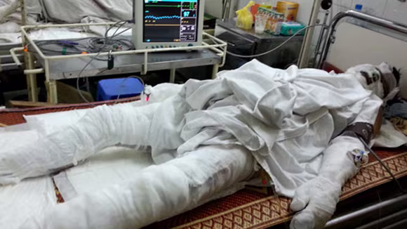 Bác sĩ Nguyễn Thống, Trưởng khoa bỏng, Bệnh viện Xanh Pôn cho biết: “Hai bệnh nhân cấp cứu trong tình trạng sốc nặng, bị bỏng rộng vùng mặt, tay, chân, ngực, lưng và bụng. Một người bị bỏng 70%, người kia nhẹ hơn là 50%. Sau một ngày cấp cứu hai bệnh nhân đã qua cơn nguy kịch. Trong 2 đến 3 ngày đầu, bệnh nhân tiếp tục được chống sốc tích cực, truyền dịch, giảm đau để theo dõi...”.