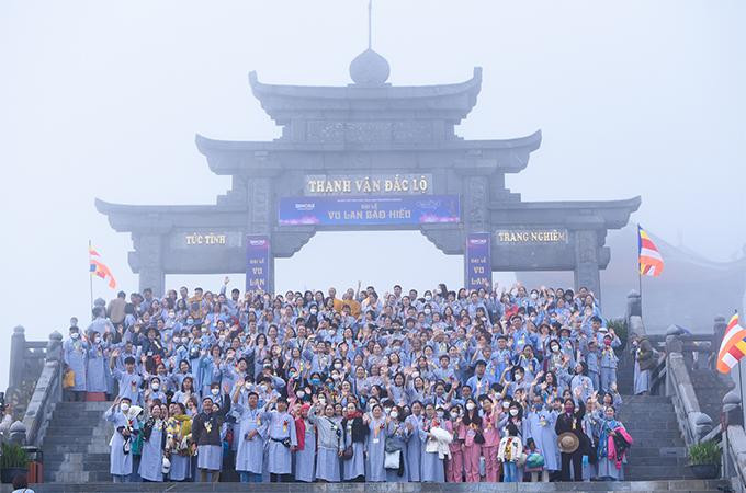 Sáng 6/8, hơn 500 tăng ni, Phật tử và du khách lên tới “Nóc nhà Đông Dương”, khoác lên màu áo lam, tham dự lễ khai mạc pháp hội Vu Lan báo hiếu. Nếu chỉ vài ngày trước, Fansipan nắng nhẹ, trời cao thì đến lễ Vu Lan, sương lại bao trùm nơi đỉnh thiêng, tựa như làn mây đưa bước chân những người con về với chốn linh thiêng, rũ bỏ mọi muộn phiền âu lo, thành tâm báo hiếu cha mẹ.