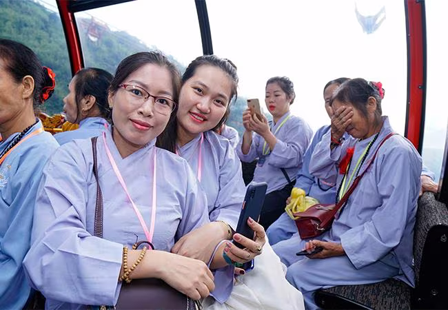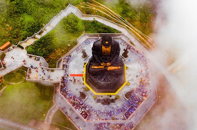 “Bắt đầu từ nhà ga cáp treo lên đến quần thể tâm linh, không khí ngày lễ diễn ra vô cùng trang trọng với cờ ngũ sắc Phật giáo, những con đường đá sạch đẹp trang trí nhiều cây xanh và hoa tươi. Mình hạnh phúc khi được cùng cha mẹ cảm nhận được sự thanh tịnh, thiêng liêng của đất trời như vậy”, chị Mai nói.
