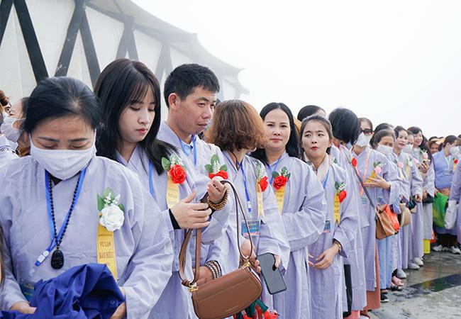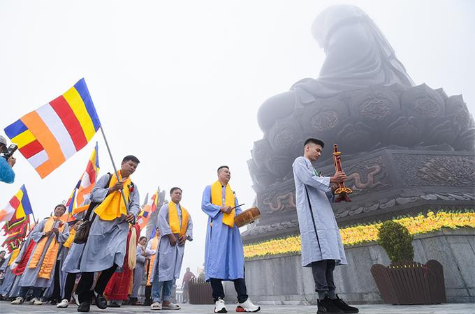 Sau đại lễ, Phật tử cùng du khách tham gia lễ diễu hành từ Đại Tượng Phật, dạo bước trên đường La Hán chiêm bái 18 tượng vị Sư tổ rồi dâng hương tại Kim Sơn Bảo Thắng tự.