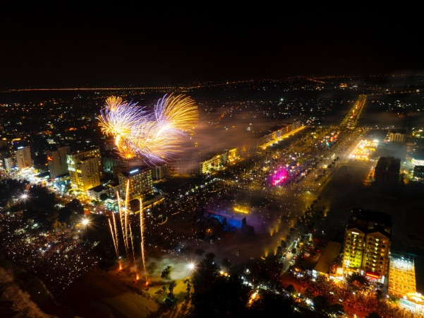 Hàng trăm ngàn người háo hức ngắm pháo hoa, vui chơi tại quảng trường biển Sầm Sơn